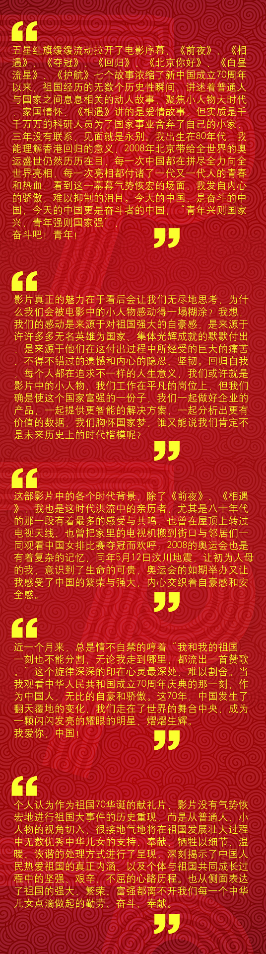 海蘭信員工《我和我的祖國》觀后感