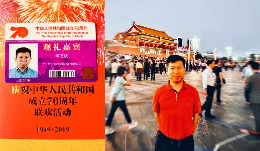與此同時,10月1日,慶祝新中國成立70周年國慶閱兵儀式和聯歡活動在北京天安門廣場隆重舉行。海蘭信董事長申萬秋受邀參加了本次慶典。