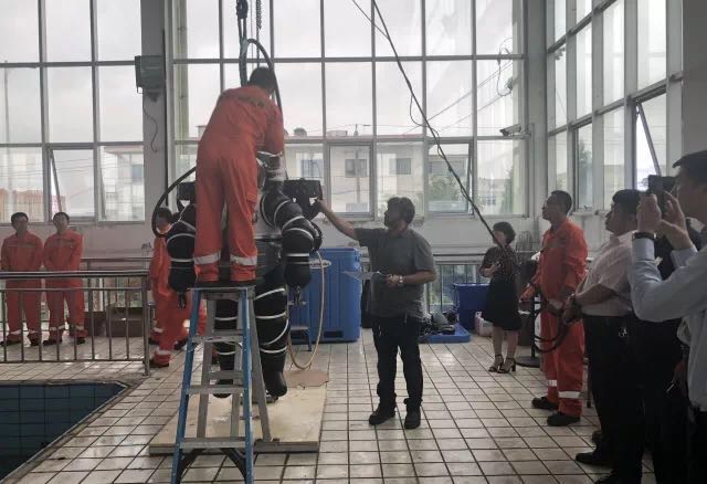 會后,與會代表在青島太平洋公司潛水員訓(xùn)練場觀摩了ADS常壓潛水系統(tǒng)的下水訓(xùn)練,身臨其境的感受了設(shè)備入水、水下移動、穿纜作業(yè)、水下重物吊掛等環(huán)節(jié),并對該系統(tǒng)的使用體驗(yàn)給予了高度的評價。